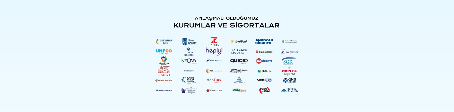 o Anlaşmalı oldukları kurum bilgileri